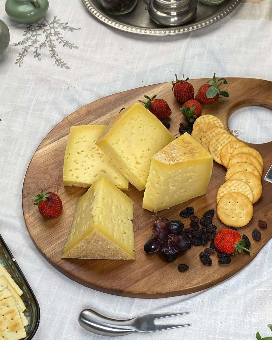 sapi murni, sedangkan Cheddar menggunakan susu pasteurisasi, yang membuat keju ini memiliki karakter yang berbeda, rasa yang lebih kompleks dan kaya, sempurna untuk keju panggang ataupun salad.