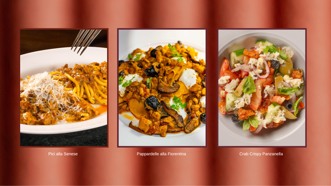 Setiap hidangan membawa kisahnya sendiri, mengajak Anda menjelajahi kelezatan khas dari perbukitan Chianti hingga pesisir Livorno. Berikut pilihan menu yang disuguhkan: