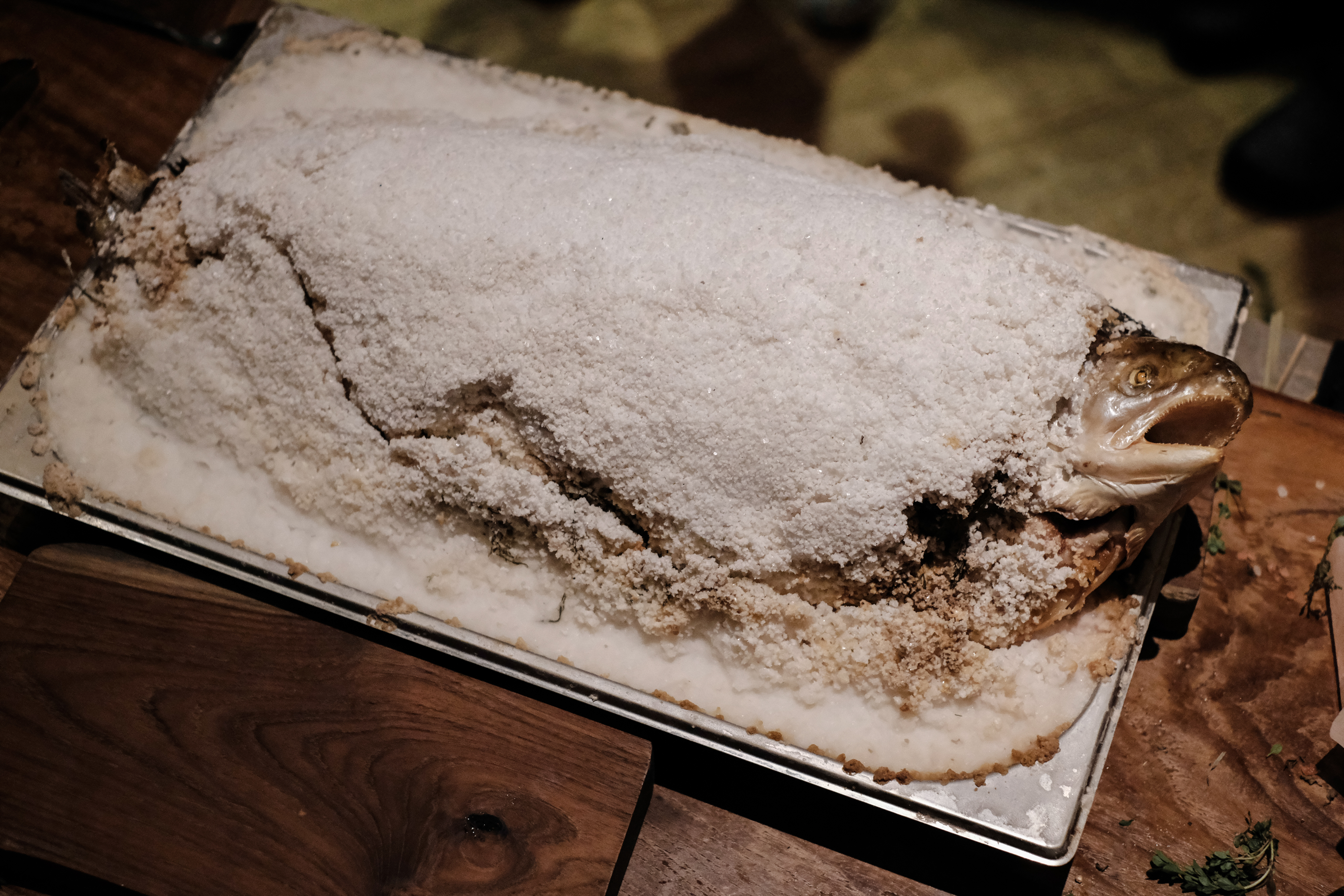 Bagi mereka yang tidak mengonsumsi daging, Joel menyajikan Salt-Baked Salmon yang penampilannya sangat mengesankan, dimana satu ekor salmon utuh berukuran besar dibungkus oleh lapisan garam tebal dan dipanggang di dalam oven selama beberapa jam. Untuk menyajikannya, Joel memecah bagian garam untuk menguak daging salmon yang sangat lembut dan penuh aroma herbs dan lemon yang digunakan di dalam ikan.