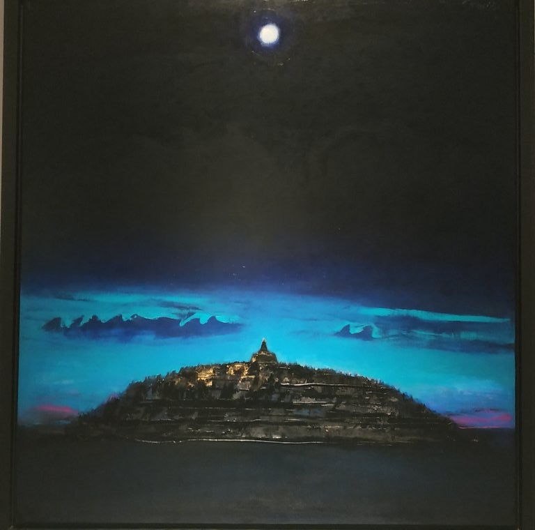 Bagian depan ruang pameran terdapat karya asli dari sketsa Borobudur. Kemudian Anda disuguhkan bentang alam yang terlukis di atas kanvas besar. Keseluruhan lukisan dipajang berdasarkan warna. Sang seniman, menyajikan warna-warna indah dan kontras dengan ciri khas matahari yang hampir melekat pada setiap karyanya.
