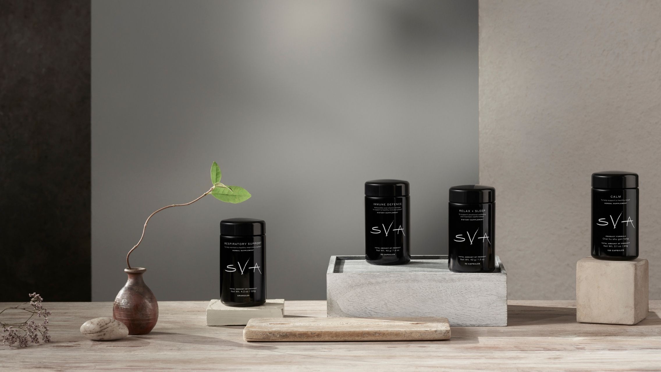 SVA Chinese Herbal Formulas dan Micronutrient Supplements adalah rangkaian produk pertama yang diluncurkan, dengan Botanical Tonics menyusul akhir tahun ini. Rangkaian tujuh Formula Herbal Cina SVA menggunakan bahan-bahan vegan yang dipilih dengan cermat, yang terinspirasi oleh sejarah panjang dan dasar-dasar pengobatan tradisional ini.