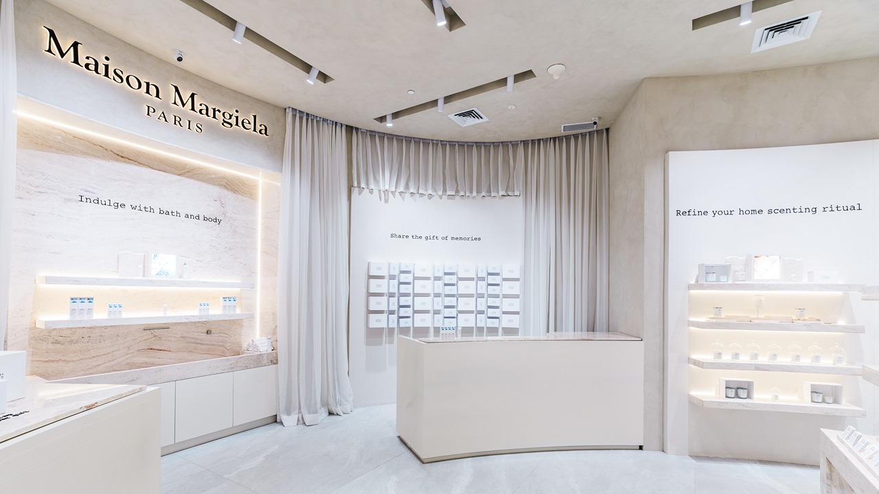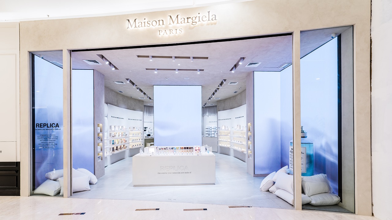 Seluruh rangkaian wewangian parfum REPLIKA dari Maison Margiela hadir di Senayan City, Jakarta. Berlokasi di lantai dasar pusat perbelanjaan mode, keberadaan butik Maison Margiela terlihat menarik perhatian. Warna putih mendominasi dekorasi butik ini, dilengkapi dengan hiasan akrilik pastel pada bagian langit-langit memberikan kesan minimalis dan mewah.