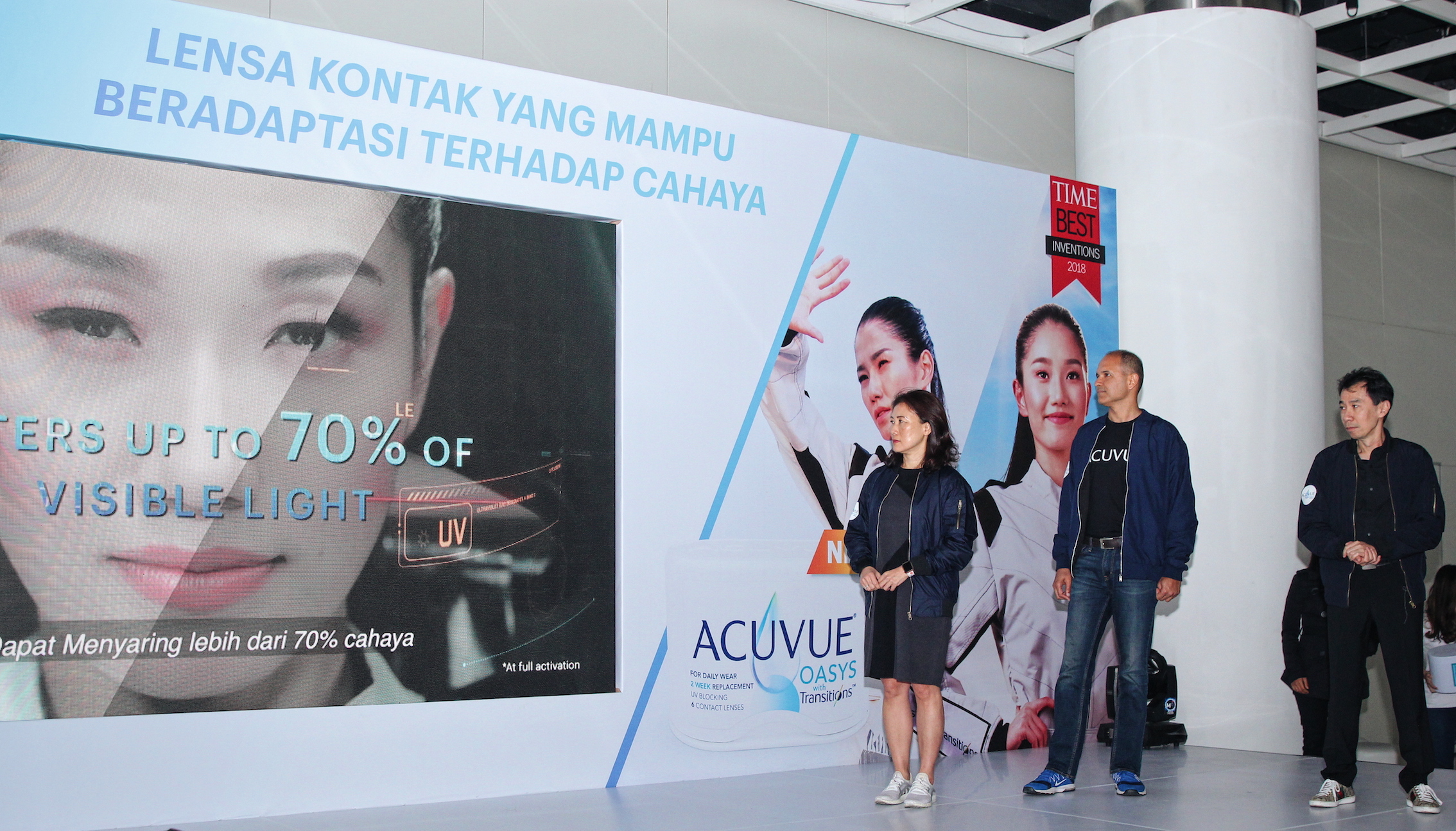 Johnson & Johnson Indonesia telah secara resmi meluncurkan ACUVUE® OASYS with Transitions™. Produk ini adalah lensa kontak yang dapat beradaptasi dengan cahaya, yang merujuk pada istilah photochromic. Pun, lensa kontak ini dapat digunakan secara berulang kali selama periode dua minggu.