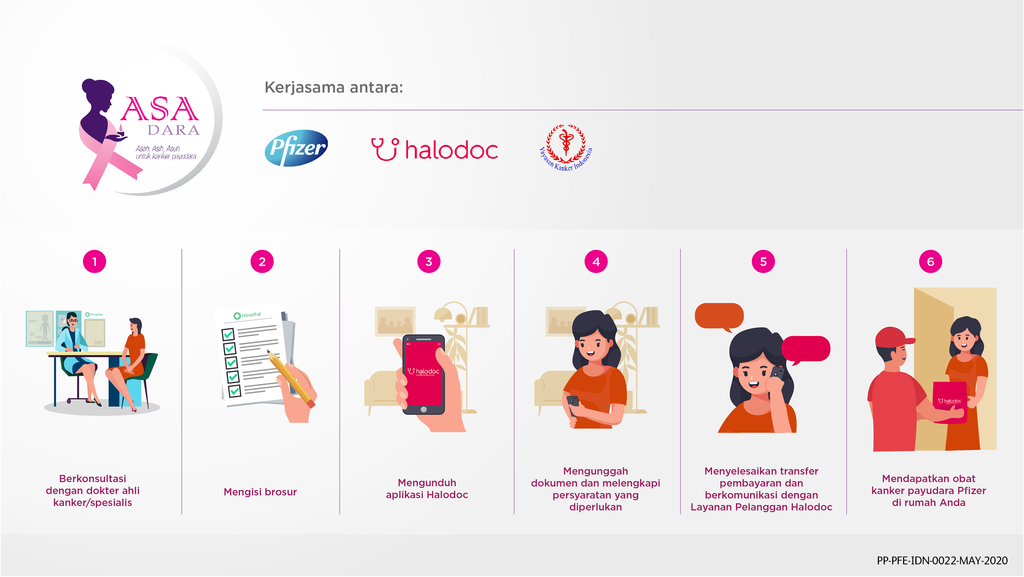 Pfizer Indonesia bekerja samanya dengan Halodoc dan Yayasan Kanker Indonesia (YKI) dalam meluncurkan sebuah solusi digital inovatif untuk pasien kanker payudara metastatic yang dinamai Asa Dara. Layanan ini membantu pasien kanker payudara unik berbasis digital melalui Halodoc dan YKI untuk mendapatkan akses terapi yang dibutuhkan dengan cara mudah dan nyaman di Indonesia.