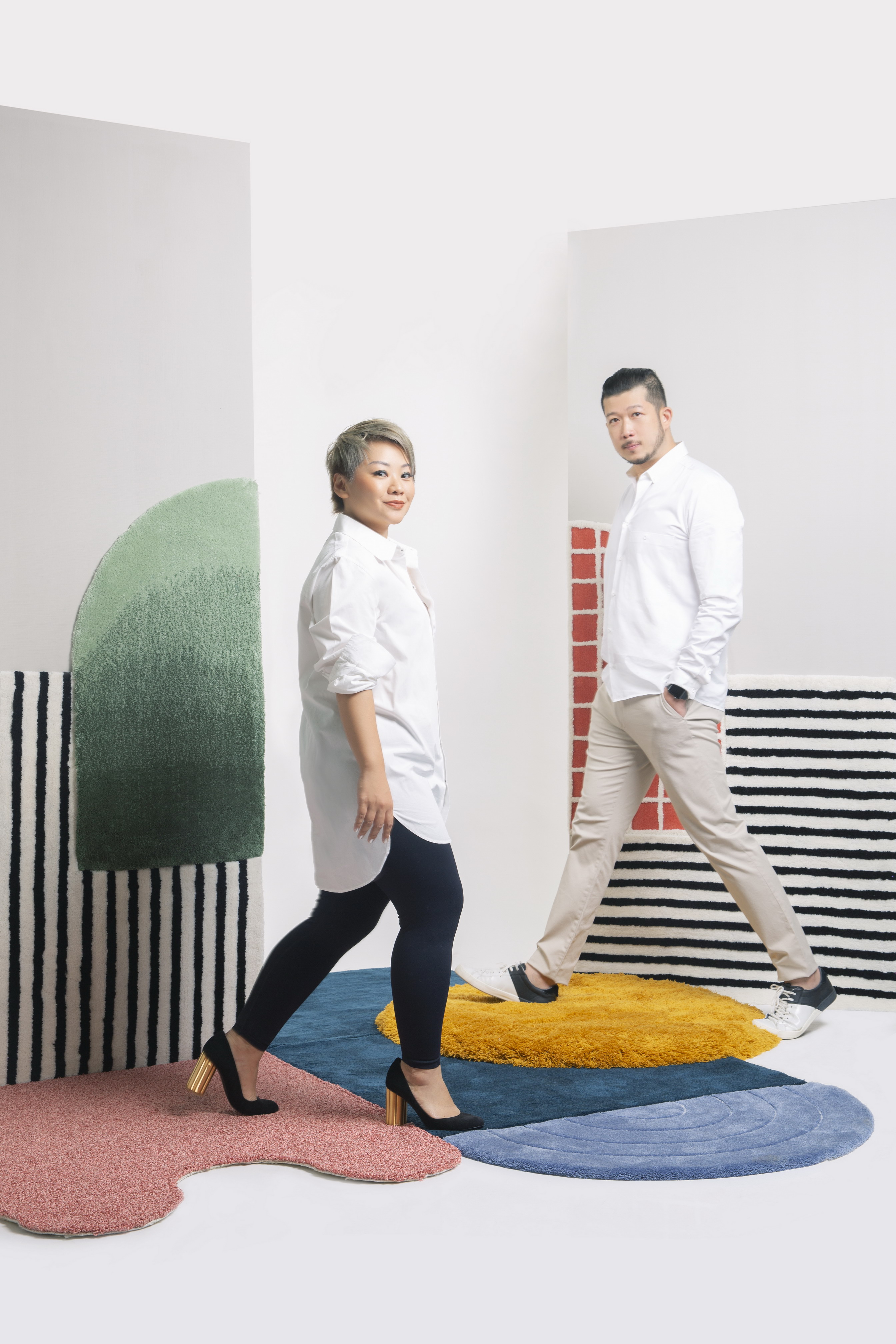 Dalam perjalanannya sebagai desainer interior, Santi dan Hamphrey telah mengalami banyak kisah tentang pencarian karpet paling ideal. Mendirikan Domisilium Studio pada tahun 2009, mereka selalu mengeksplorasi dan mengedepankan ide ide baru yang membuat menonjol dalam desainnya. Melalui DMDIO yang merupakan mini alter ego dari Domisilium Studio, Santi Alaysius dan Hamphrey Tedja berkolaborasi dengan Moire dengan konsep “Playfulness”.