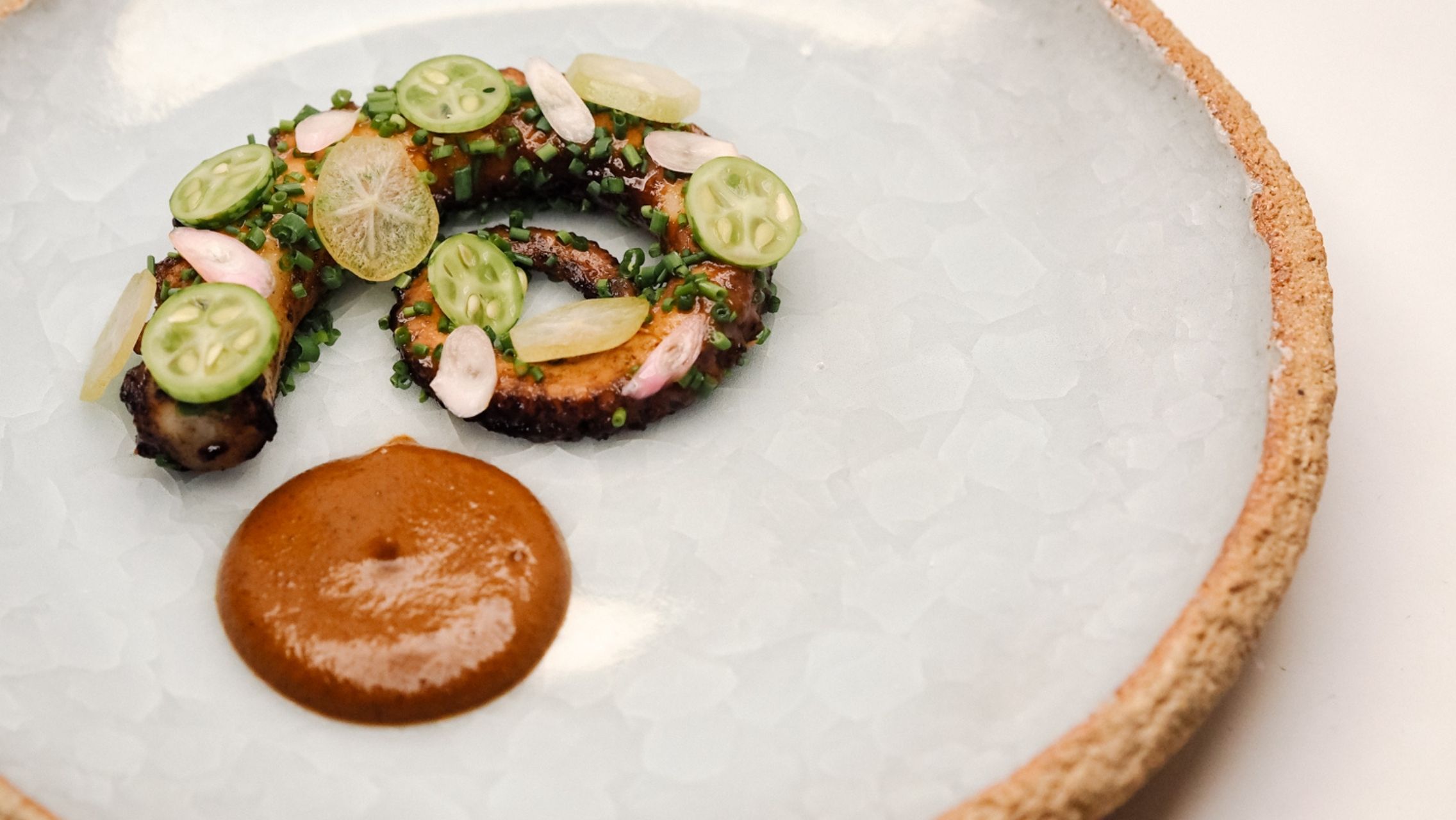 Hidangan yang begitu mengesankan untuk saya pribadi adalah Beef heart pastrami, sauce gribiche, koji fried beef brain, dan pickled green peppercorns. Saya pernah mencicipi otak sebelumnya dalam bentuk gulai. Anda tentunya pernah melihat, jika belum pernah mencicipi, di restoran Padang. Ini bukan sesuatu yang aneh untuk orang Indonesia. Otak kali ini digoreng sehingga sedikit renyah di bagian luar namun sangat lembut di bagian dalam.