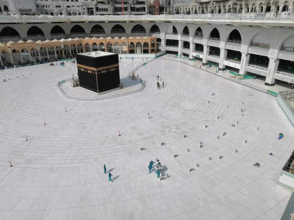Tempat suci para umat muslim dunia, Ka’bah yang selalu dipenuhi dengan orang terlihat sepi. Pemerintah Saudi telah menetapkan pembatasan kegiatan jam luar dan menghentikan seluruh penerbangan internasional sejak tanggal 6 Maret 2020, mengakibatkan tak sedikit orang yang tidak bisa masuk maupun keluar dari negara tersebut.