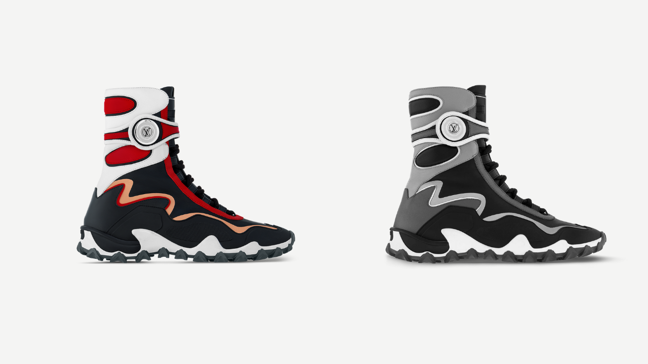LV Rush tampil dalam rupa sepatu kets-bot dengan panjang di atas mata kaki. Untuk versi yang lebih tinggi tersedia dalam warna merah berani dan desain monokromatik, yakni hitam-putih. Terbuat dari bahan suede yang nyaman dengan dilapisi karet serta kulit anak sapi, keseluruhan rancangan dioptimalkan untuk kegiatan sehari-hari. Kontruksi sepatu yang ringan dan fleksibel memberikan ruang luas bagi kaki untuk bergerak dan bernapas. Simbol metalik LV ikonis menjadi pelengkap manis keseluruhan desain. Detail pengikat tali sepatu yang terinspirasi dari sepatu kets konvensional bersanding sempurna dengan siluet hibrid musim ini.