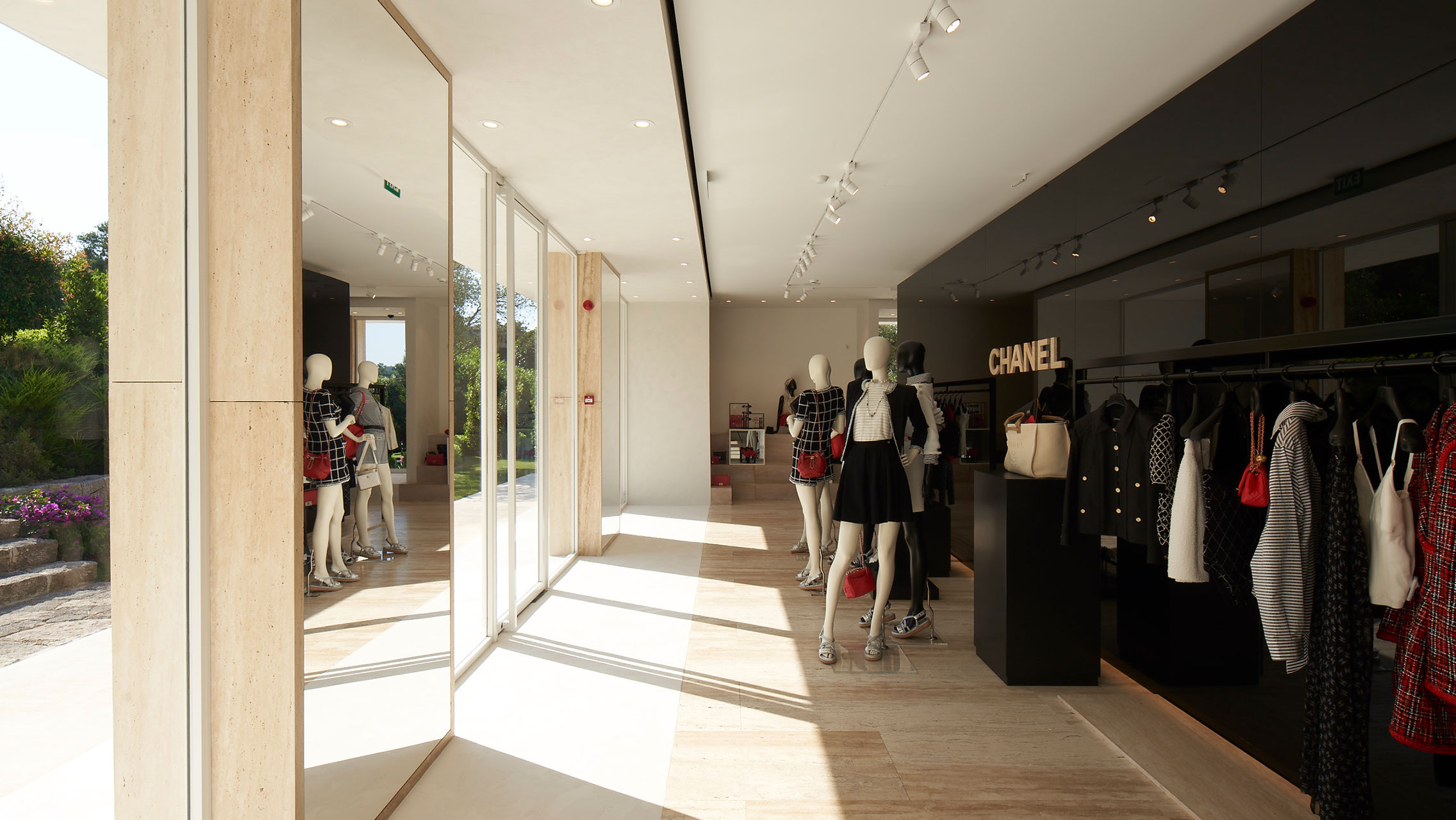 Lokasi ini sudah menjadi rumah musim panas Chanel selama satu dekadi terakhir, tepatnya di townhouse Le Mistralée yang terletak di pusat kota, dan selalu menjadi sebuah destinasi tersendiri bagi para turis yang datang ke Saint-Tropez. Sebabnya, dekorasi butik seasonal ini selalu berubah setiap tahun. Tahun ini, selain dengan warna klasik Chanel yakni hitam, putih, dan beige, interiornya diperkaya dengan gradasi warna matahari yang hangat dan cerah. Saat melangkah masuk, tamu akan disambut dengan lantai yang terbuat dari batu dengan warna pink dan oranye layaknya semburat langit saat matahari terbenam.