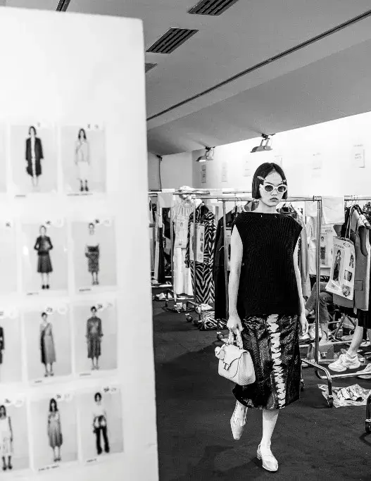 Permainan warna pada busana diciptakan dengan semarak melalui kehadiran handkerchief dress atau gaun dengan pola potongan menggunakan helaian dan corak scarf yang khas, dengan tali pada bahu yang unik, yaitu dari untaian rantai dari material resin bercorak kulit penyu. Efek ringan dan penuh warna yang hangat seakan mewakili hangatnya musim yang akan datang.