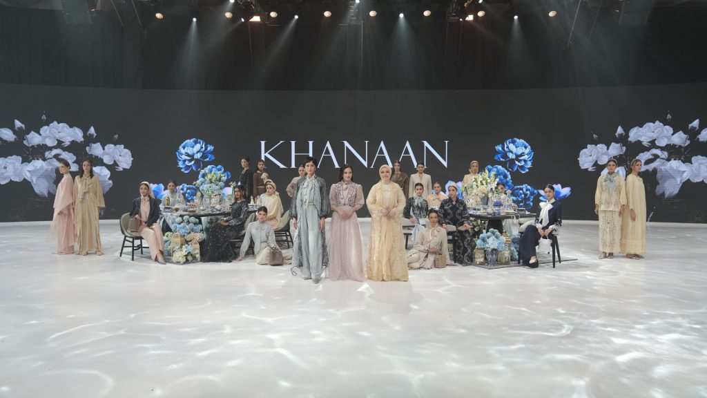 Setiap detail dirancang dengan saksama untuk membawa para tamu merasakan atmosfer Lebaran yang sesungguhnya, hangat, intim, dan penuh makna. Model-model yang mengenakan busana Khanaan tampil sempurna dengan sentuhan akhir berupa tas dari @ella.glo, menambah kilap elegan pada setiap penampilan.