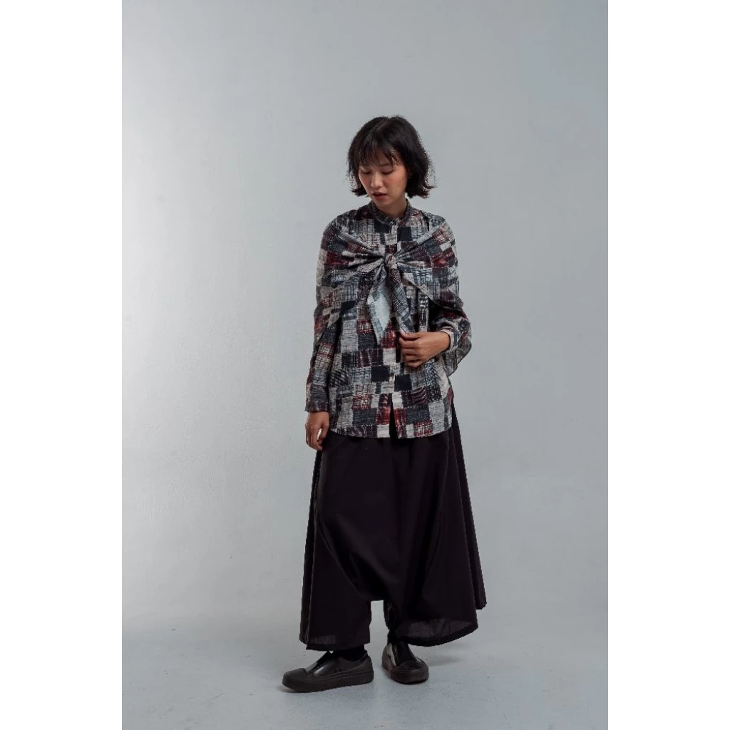 Fashionlink – Yestoday – Oversized Boxy Shirt Detachable Scraf In Patchwork