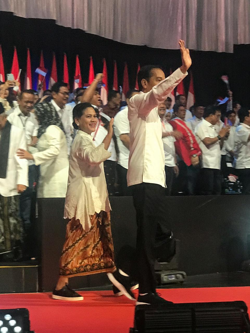 Namun, ketika pandangan Anda turun sedikit lagi, akan terlihat Iriana mengenakan sepatu sneakers warna hitam dengan pinggiran sol warna putih. Senada dengan sepatu sneakers yang dikenakan Jokowi pada kesempatan yang sama.