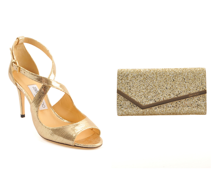 Untuk menguatkan kesan glamor, lengkapi penampilan Anda dengan clutch Emmie yang juga hadir dalam kilau keemasan.