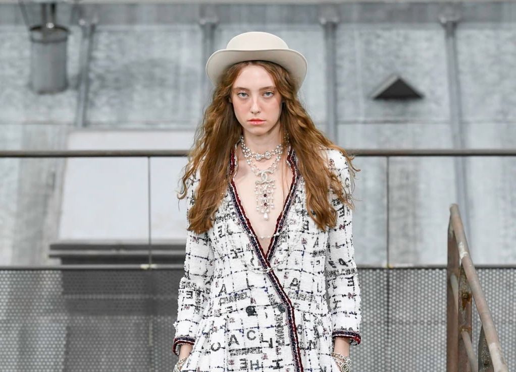Chanel SS20Caption 9. BUNGA. Menyelipkan bunga akan memberi sentuhan segar. Pilih bunga segar atau imitasi berwarna cerah, sisipkan di rambut atau bisa juga seperti inspirasi ini. diselipkan pada topi.