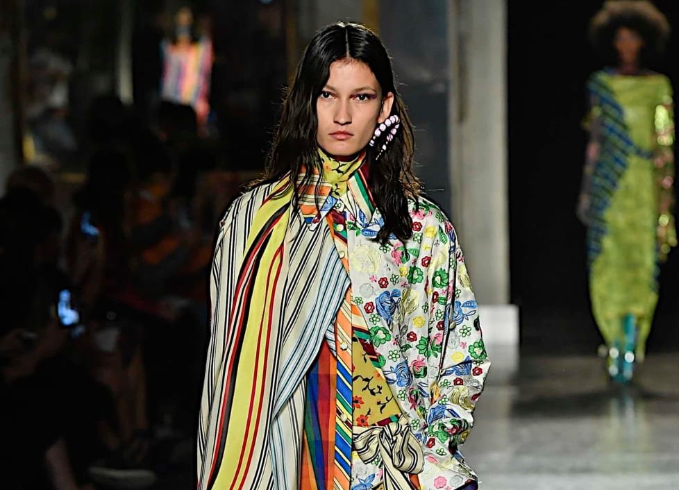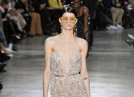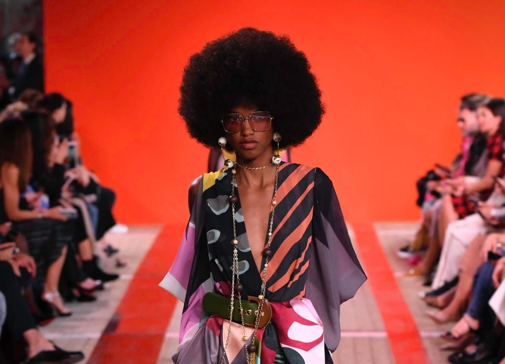Elie Saab SS20 10. WIG. Sesekali memunculkan sisi humor tak ada salahnya. Bagi pekerja kreatif, wig afro ini akan menyemarakkan saat meeting anda. Hindari menggunakan wig yang tidak sesuai dengan wajah, karena akan terlihat aneh.