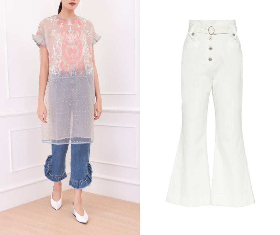 Hadirkan tampilan formal nan playful dengan memadukan celana jeans dengan gaun transparan berwarna cerah seperti gaun Sapto Djojokartiko ini. Untuk menambah kesan formal, pilih celana jeans warna beige atau putih dengan potongan lurus atau flare. Misalnya celana jeans dari Isabel Marant atau Miu Miu ini.
