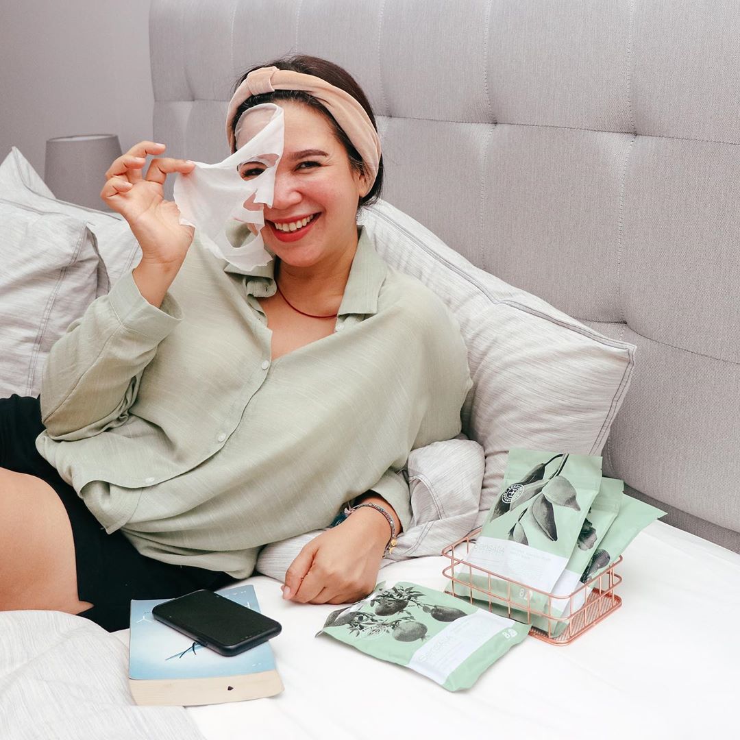 Aku basically sama aja, dan memang lebih sering maskeran karena lebih banyak waktu. Maskernya bisa berbentuk splash mask yang mengandung Lactic Acid untuk pagi, kadang juga pakai sheet mask, dan malamnya pakai overnight mask. Kalau skincare rutinnya, pagi aku pakai pembersih, treatment essence, serum, krim mata, face oil, pelembap, dan sunscreen. Begitu juga di malam hari, yang berbeda hanya essence, pelembap dan sunscreen aku ganti menjadi toner dan krim malam.