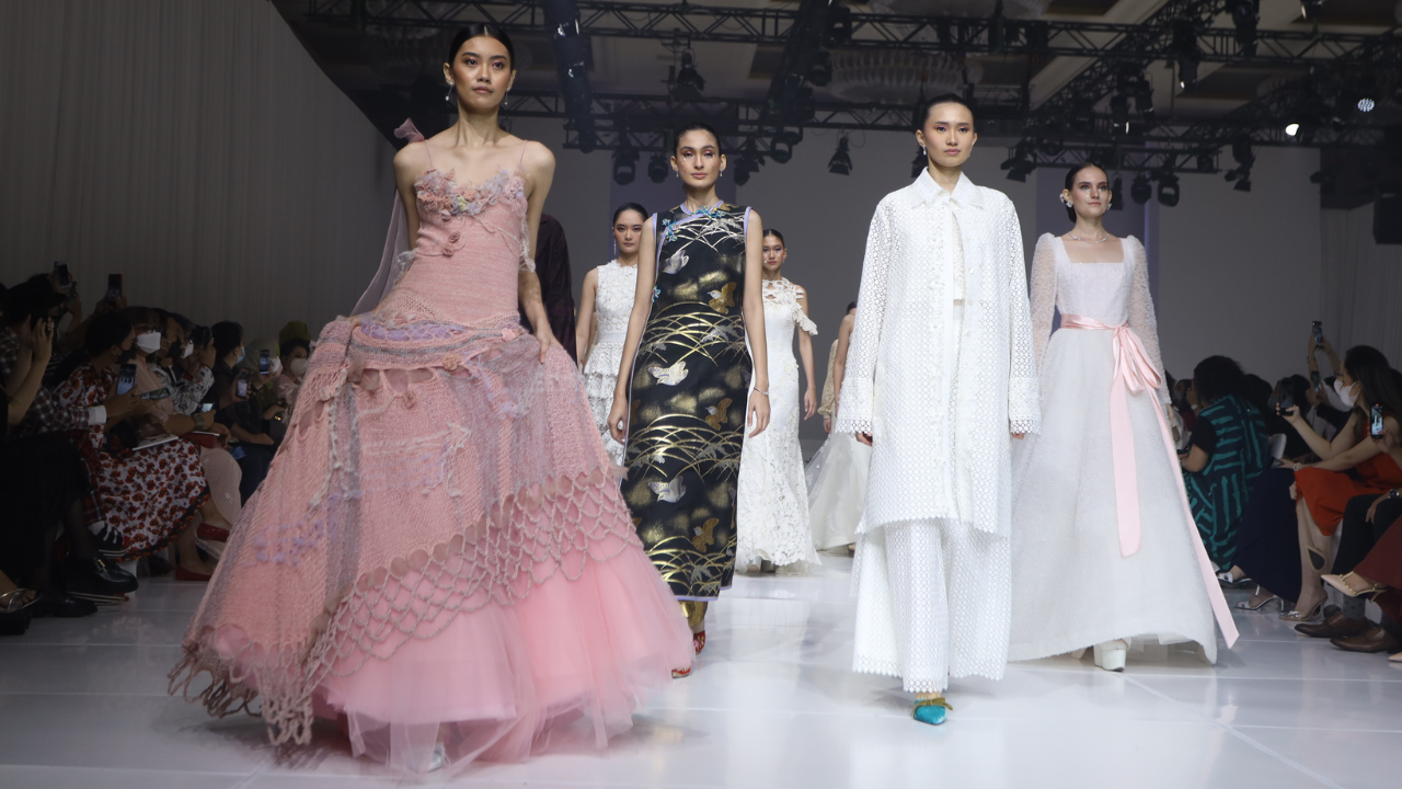 Siluet seperti baby doll, A-line, dan bustles memenuhi koleksi Didi Budiardjo Annual Show 2022
