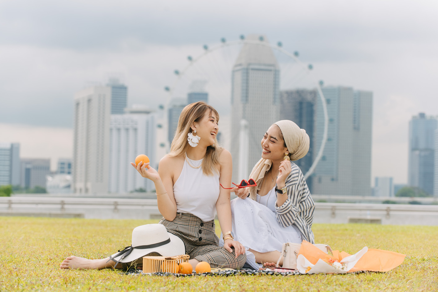 Marina Barrage merupakan bendungan yang dibangun melintasi Marina Channel. Bendungan air tawar pertama di Singapura ini memiliki pemandangan yang fantastis karena langsung menghadap ke Singapore Fyler. Di sini Anda bisa membuat foto ala piknik bersama para sahabat ala escapist sekaligus content creator Evelyne Gabriella.