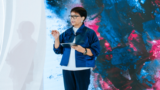 Efek riasan mata ini ditarik sampai ke alis model untuk tatapan retak yang memiliki kemewahan dengan perspektif tiga dimensi. Isamaya dibantu oleh Sam McKnight untuk menghasilkan potongan-potongan bulu mata palsu yang berkilauan yang merupakan salah satu item mode yang kerap dijumpai dalam lantai dansa. Kemampuan Ffrench untuk menangkap perpaduan pesona tahun 70-an terbukti dengan hasil gaya modern di pertunjukkan Halpern di London Fashion Week 2019. (JLA) Foto: Dok. Corey Tenold.