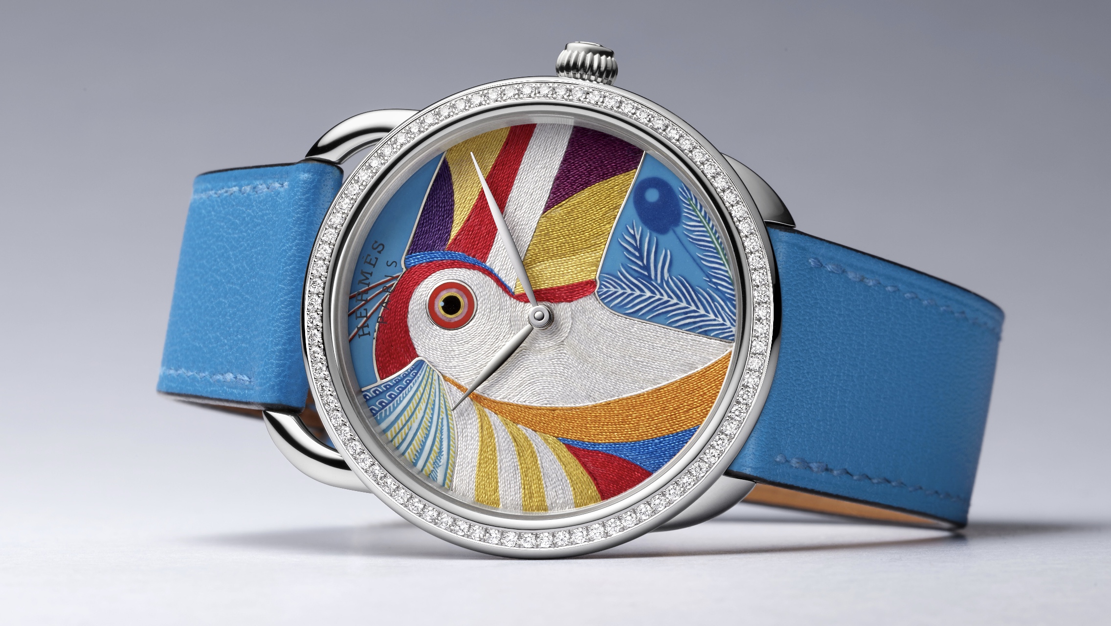 Arloji dengan diameter 38 mm yang mengadaptasi model Arceau yang didesain oleh Henri d’Originy pada tahun 1978. Bentuk bulat klasik dengan tali dari kulit menjadi wajah ikonis dari model ini. Namun kali ini penampilannya dibuat lebih modern, memesona, dan menampilkan sisi eklektik lewat ilustrasi burung tukan seperti yang terlihat di syal Hermès karya Katie Scott yang dirilis setahun lalu.