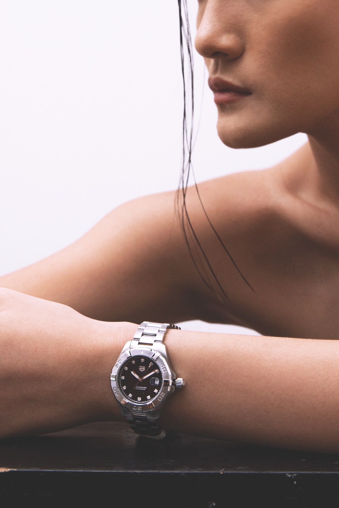 Aksesori tak melulu memberikan kesan feminin. Pancarkan sisi tangguh Anda dengan TAG Heuer Aquaracer dari bahan stainless steel ini. Berukuran 32mm, arloji ini tampil dengan dial hitam yang gagah.